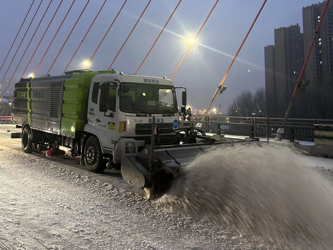 开局战风雪:2024年初,淮北迎来一场罕见大雪,项目团队迅速启动低温雨雪冰冻灾害应急预案, 以“大型机械开路 + 人工辅助清扫” 的人机协同作战模式,全方位开展清雪作业,实现了“雪中路通、雪停路畅”的目标,获得了业主单位的高度认可,给予了淮北项目“先进集体”的表彰,也被媒体多方报道。