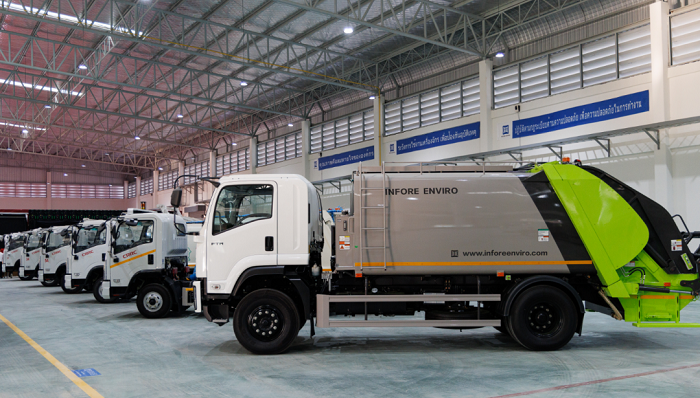 10立方米垃圾压缩车装载能力比行业传统产品高出10%,杜绝污水滴漏,高效破解垃圾处理难题;6立方米纯电动清洗车装水容积领先行业20%以上,作业能耗降低10%;8立方米扫路车清扫能力强,作业油耗低,能替代60名人工,每年可节约675万泰铢。