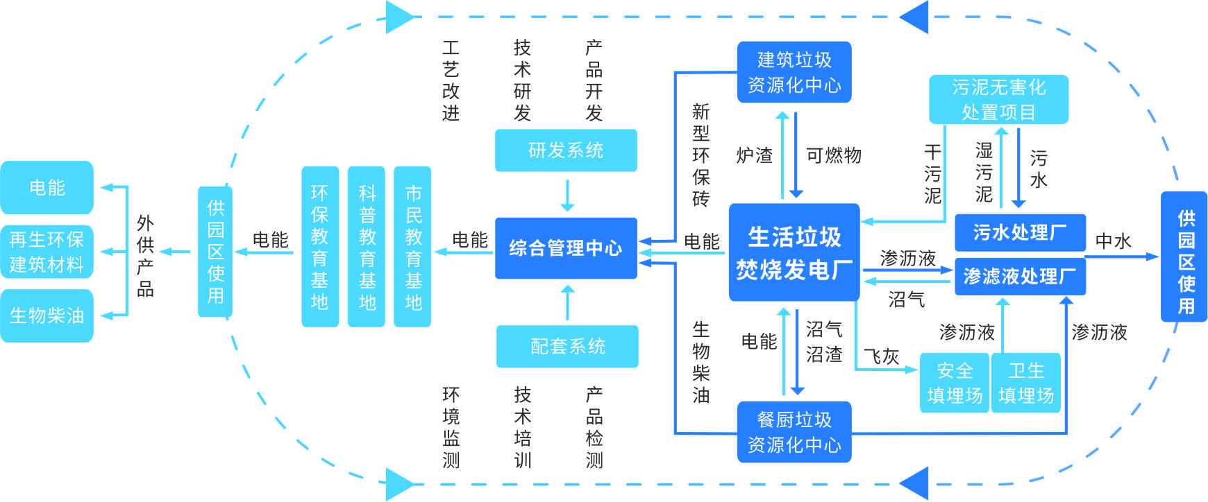 HTH.COM华体会环境循环经济产业园模式以生活垃圾焚烧发电厂为园区核心,统筹各类生活垃圾处置中心的配套建设,对各类生活废弃物进行无害化、减量化、资源化处理,输出电能、建筑材料、生物柴油等副产物,为园区生产、生活提供服务。